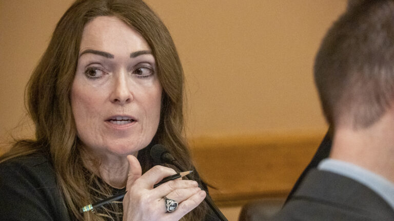 Read More »Kansas State Representatives Barb Wasinger, R-Hays, left, and Cindi Howerton, right, R-Wichita, follow a House debate on a proposal they…